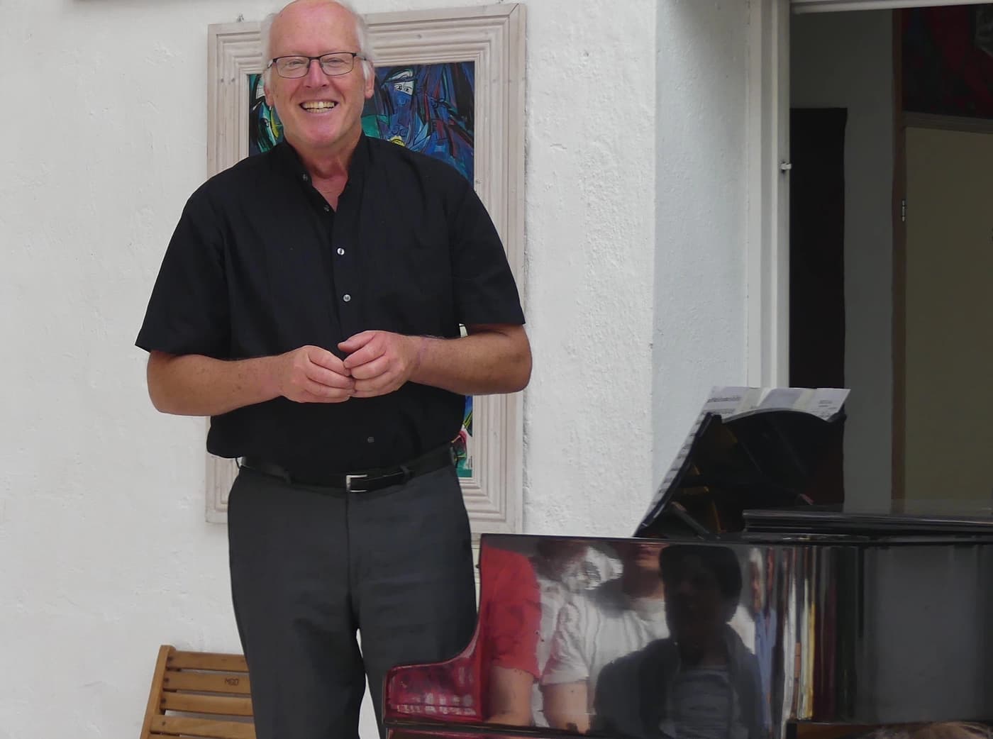 Die jungen Leute wurden unterstützt und begleitet von ihrem Dozent Manfred Kratzer, der als Zugabe mit einem Stück „…nur für die linke Hand…“ brillierte. Ein wunderbarer Abend, eine wichtige Vorbereitung auf die Aufgaben des folgenden Samstags!