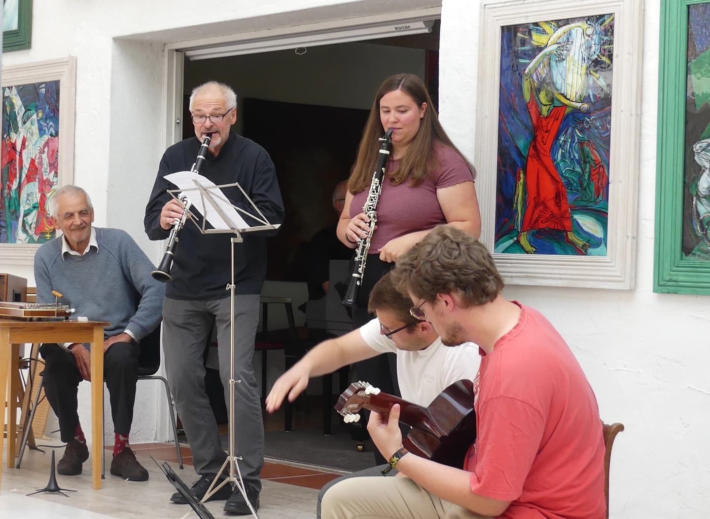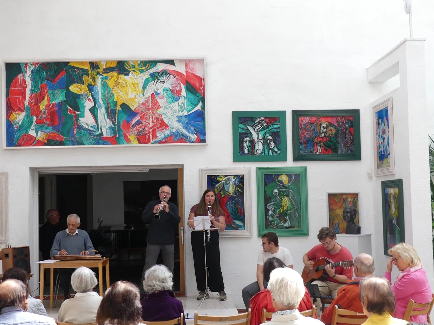 Der Sonntagmorgen holte uns mit einer hellen Matinee aus diesem gedanklich durchlebten Tief. Bei den spontanen Beiträgen stießen Josef Bichlmair und Günter Schwanghart mit Zither und Klarinette zu den Musizierenden und lieferten eine großartige Jazz-Improvisation, nach der alle Künstler*innen mit lebhaftem Beifall und Dank überschüttet wurden!
