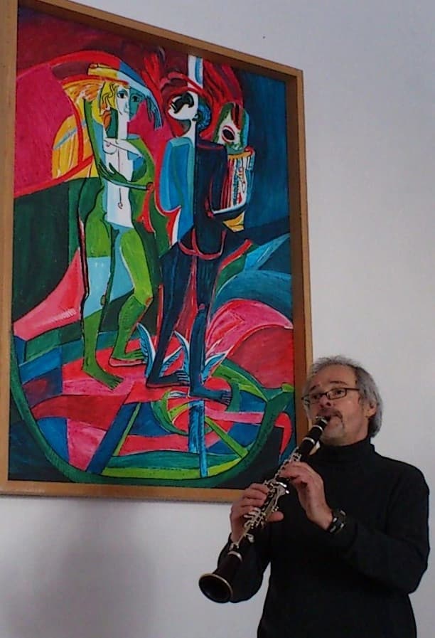 Wer die Bilder des Malers Erich Schickling betrachtet, der erkennt, dass hier nicht nur (meist) christliche Motive dargestellt sind, sondern dass der Künstler immer wieder die Wurzeln der gesamten europäischen Kultur frei legt: Christlich, jüdisch, antik; mehr noch: Diese Kulturen wirken hier auf einzigartige Weise zusammen. Der Allgäuer Klarinettist Günter Schwanghart, der sich unter anderem mit der Klezmer-Musik beschäftigt und oft im Hause Schickling zu Gast ist, näherte sich dem Komponisten Gustav Mahler genau unter diesen Gesichtspunkten. „Kann man Mahler vom jüdischen Gedanken aus beschreiben?“ lautete seine Überlegung. Schwanghart betonte, dass man Mahlers Musik keinesfalls am Judentum festmachen kann.Doch bei eingehender Betrachtung ergeben sich bemerkenswerte Parallelen zwischen dem Wesen des Klezmer und dem Kompositionsstil von Gustav Mahler, auch wenn dessen Werke keine Klezmer- Elemente aufweisen.