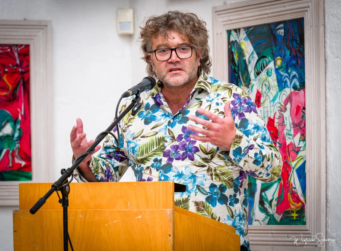 Dass die Würdigung dieses Platzes als „Ort der Begegnung und Einkehr“ keine Phrase war, zeigte sich in allen Reden, die von Tiefgang und persönlichen Worten geprägt waren. Dr. Georg Bayerle, der vom BR bekannte Kulturwissenschaftler und -vermittler, widmete sich bei seiner Vorstellung des Schickling-Bildbandes dem Schickling-Zitat „Mit den Augen trinken wir“. Verleger Josef Fink stellte die Mitarbeiter an diesem Band vor, vom Fotograf bis zur Grafikerin (die teilweise bis aus Berlin extra zu diesem Termin angereist waren), und nannte das Ergebnis ein Herzstück seiner Arbeit mit 1800 Kunstführern in 28 Jahren.